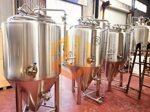 精釀啤酒設(shè)備發(fā)酵罐:啤酒發(fā)酵罐可配置200升或者400升啤酒發(fā)酵罐,整體設(shè)計采用頂部人孔設(shè)計思路,采用水封機(jī)械式排氣閥設(shè)計,可自由設(shè)定壓力排出,自動排壓;溫度采用夾套降溫的方式,單罐單控,發(fā)酵溫度可自由設(shè)定溫度,自動控制;保溫采用80MM的保溫層;發(fā)酵罐配有液位裝置,可以觀察內(nèi)部液位;工作壓力2bar,成品產(chǎn)品保壓3bar72小時以上。